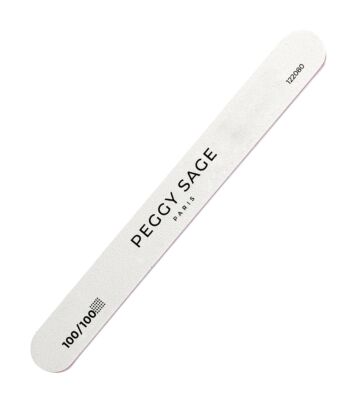 Lima de uñas en forma rectangular 2 caras lavables calidad Peggy Sage. Esta lima ofrece una superficie abrasiva más amplia. Ideal para la confección de uñas artificiales.